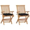 Día y Noche - Día y Noche Sillas de jardín 3 uds madera maciza de teca con cojines negros