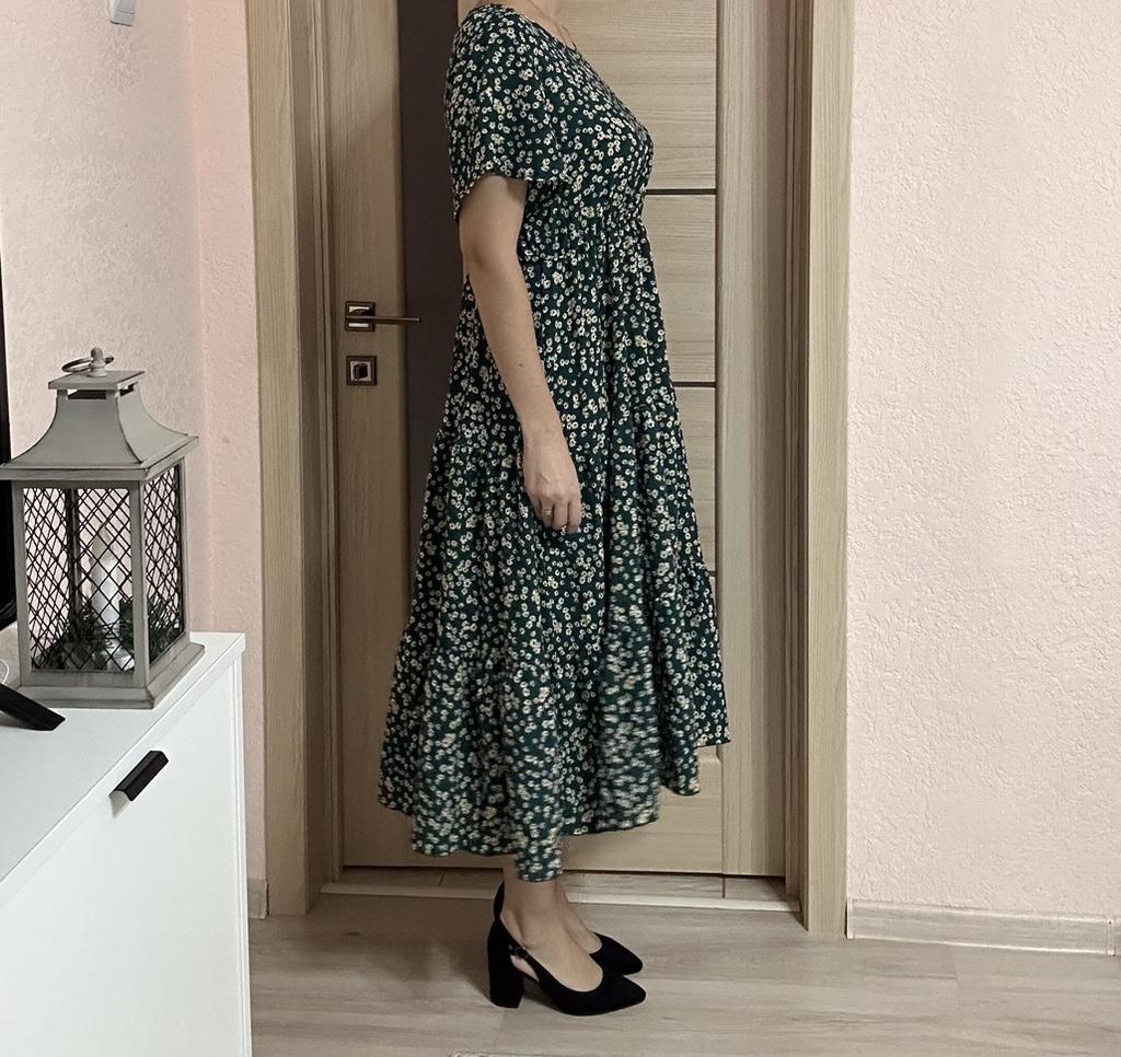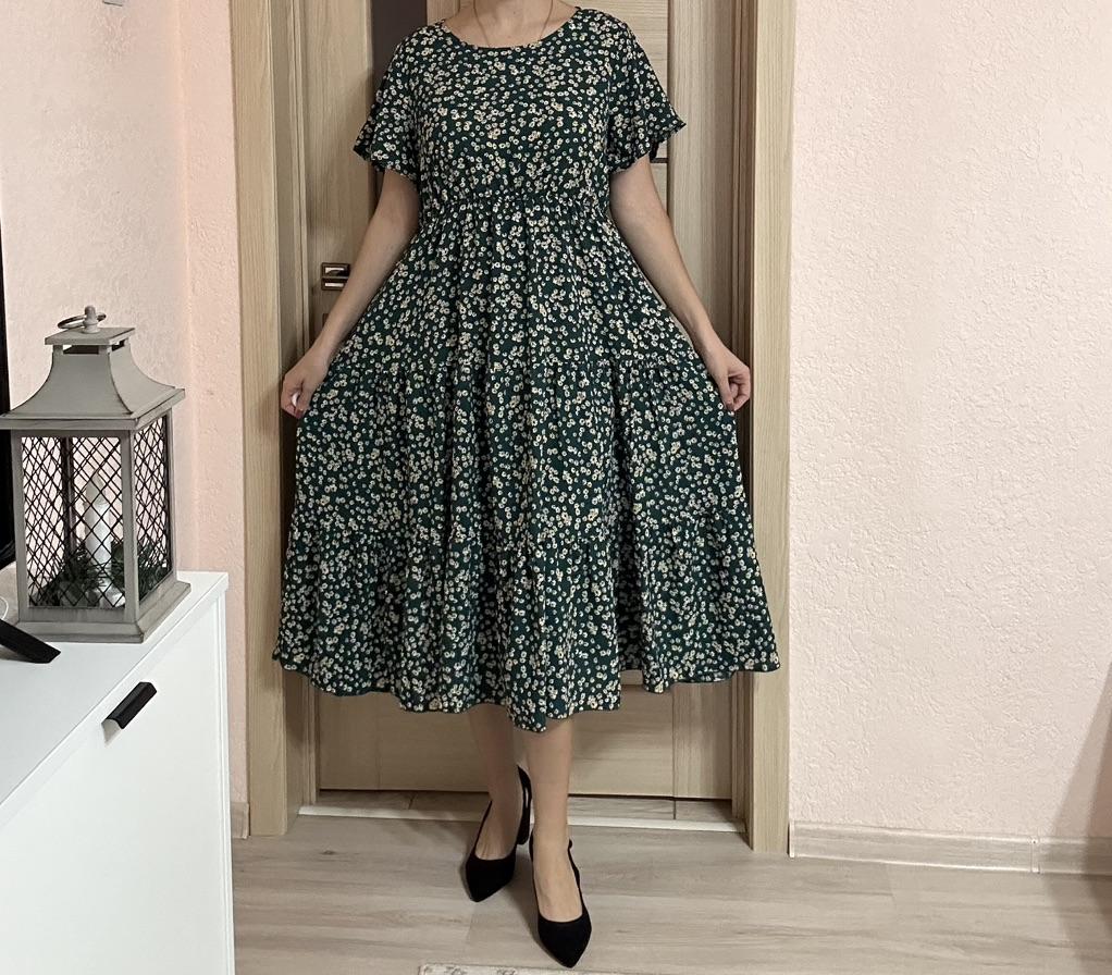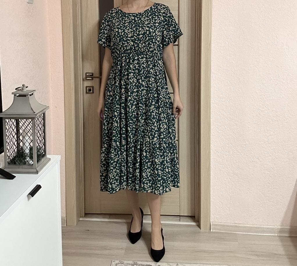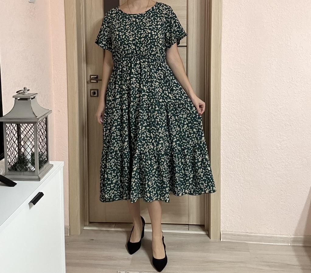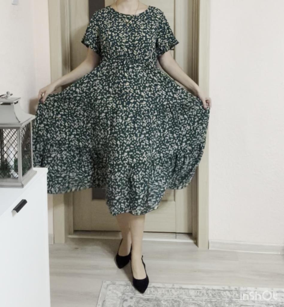 Trykket kjole for kvinner i store størrelser Denne kjolen er rett og slett nydelig! Det løse snittet er veldig komfortabelt og smigrende for kroppen, spesielt i store størrelser – gir behagelig bevegelse og er ikke for tettsittende.. Et vakkert og originalt trykk, som tilfører interesse uten å være for skrikende.. Jeg likte spesielt den runde kragen og trekvartlange ermene – perfekt for overgangssesonger som høst og vår. Stoffet er lett og pustende, ideelt for hverdagsbruk eller til og med for et lett arrangement.. Den kan kombineres med sandaler, joggesko eller støvletter – avhengig av humøret. I det store og hele – en praktisk, behagelig og flott kjole. Veldig glad for at jeg bestilte den!