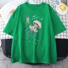 Svømming Fargerik Manet Trykk Herre Kort Ermet Japansk Harajuku O-Hals Topper All-match Oversize Vintage Mann Bomulls T-skjorter