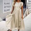 Kvinners vårsommerkjole med ståkrage, lange ermer, hul ut blonder, ensfarget, dobbeltlags, retro, høy midje, skoleball, fest, pendling, maxikjole
