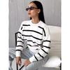 Autumn Winter Chic Striped Loose Pullover Women New Elegant Knitted Sweater Streetwear Tops Vintage Round Neck Y2k American Retro Clothes