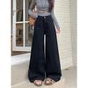 Black Wide Leg Jeans Women New Chubby Girl Plus Size Loose High Waist Cover Slimming All-Match Straight Mop Pants