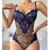 Sexy leopardmønstret body spaghettistropper åpen rygg blonder patchwork ett stykke antrekk bodyer
