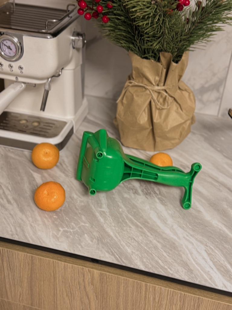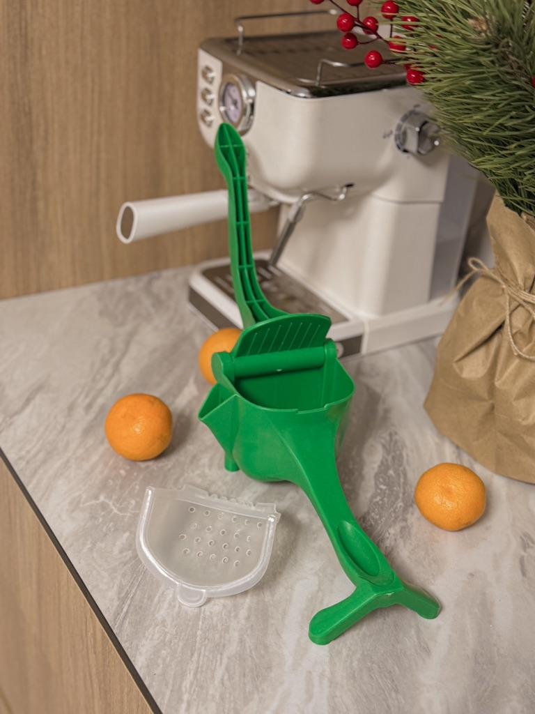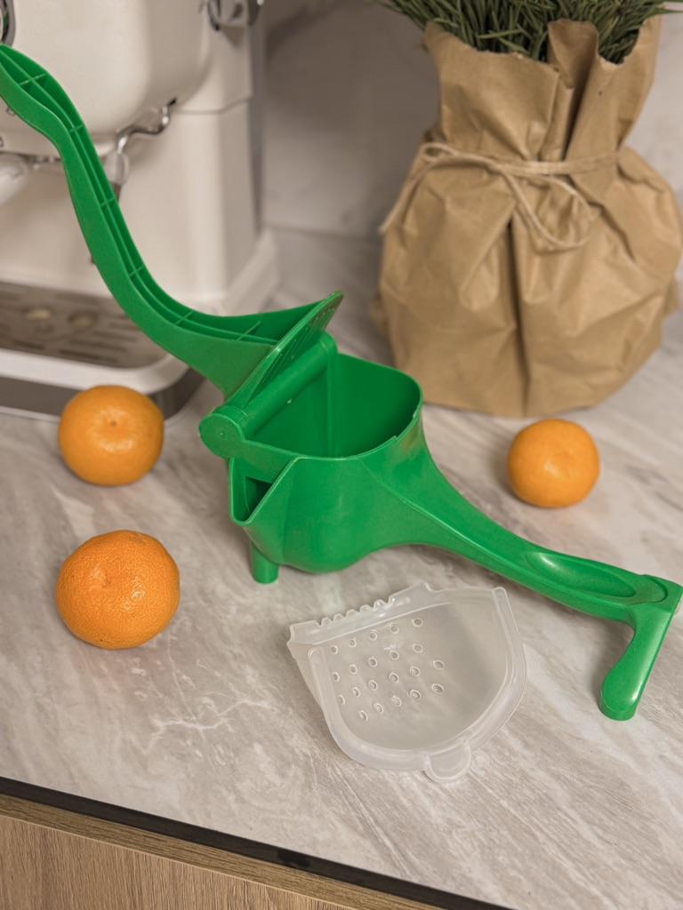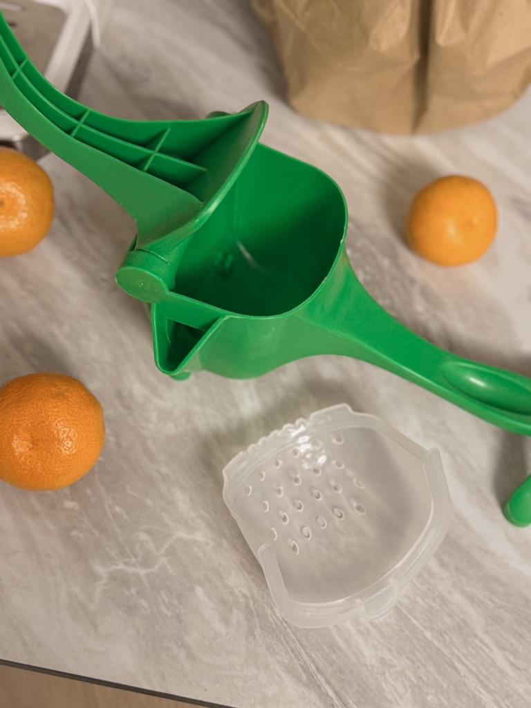 Manuell juicer🍊🍇🍊 Den ergonomiske utformingen av den manuelle juiceren gjør at du enkelt kan presse juice fra enhver sitrus. Ved å bruke ferske appelsiner kan du gi deg selv og dine kjære en sunn vitamindrikk. Den manuelle juiceren er laget av høykvalitets plast. Gjennomtenkt filtrering sikrer rask utvinning av ren juice uten frø, med et minimum av fruktkjøtt. Juiceren er enkel å rengjøre under rennende vann eller i oppvaskmaskinen. Veldig lett å vaske, lett å montere. Veldig praktisk og enkel å bruke. Passer til de fleste frukter.