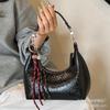Small niche design, oil wax leather material, bell decoration, new temperament women's handbag, pillow bag, dumpling bag