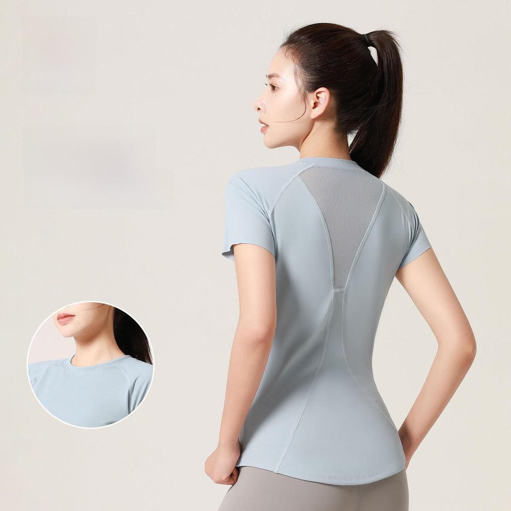 Juyitang Women's Mesh Short-Sleeve Yoga T-Shirt: Breathable, Chest-Shaping Fitness Wear