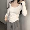 Spring Square Collar Long Sleeve Casual T-shirt Women Fashion Autumn Solid Base Women's T Shirt Tops Elegant High Elastic Slim Pullover Tee New 26011