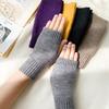 100% Wool Knitted Short Gloves Winter New Half Finger Anti Freeze Sleeve Solid Color Versatile Fashion