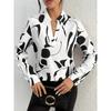 Women's Autumn Loose Long Sleeve V-Neck Pullover Printed Shirt Blouse