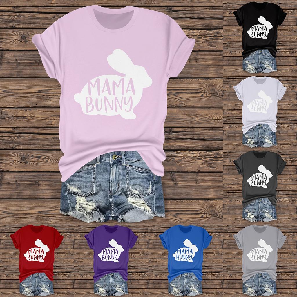 Women's Casual Easter Printed T-Shirt Round Neck Pullover Short Sleeve Top