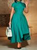 2024 Sommer OL Stil Kvindekjole: Puffermer, Asymmetrisk skulder, Splitt, Europeisk og amerikansk mote