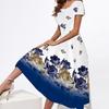 2024 Women's Plus Size Square Neck Printed Maxi Dress with Short Sleeves — kjøp online billig på Joom-butikken