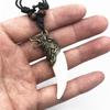 Vintage Sølvbelagt Wolf Tooth Anheng Halskjede Akryl White Tooth Charms Perler Genser Kjede Tau Amulet Gave