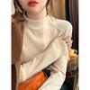German Velvet T-shirt, Half Turtleneck Zipper Top for Women In Autumn and Winter New Design, Fish Bone Long Sleeve Inner Base Shirt