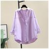 Women's Spring Solid Color Loose Mid-Length Shirt Design Back Split Lapel Casual Tops