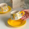 Cream Color Ceramic Coffee Mug Set Cup and Saucer Retro French Letters Dining Breakfast Milk Afternoon Tea 7-Inch Dessert Plate
