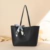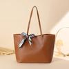 Fashionable Large Capacity Tote Bag with Lychee Pattern and Scarf Decoration - Solid Color Women's Shoulder Bag, 2024 Edition