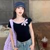 Dame Rundhals Rett skulder Kort ermet Sommer Slankende og Søt Hot Girl Topp