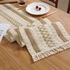 Bohemsk Tofarget Strikket Bordflagg, Krem og Brun med Dusker Heklet Blonder Bordflagg, Blonder Bordflagg, for Hjemmeinnredning