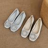 Elegant imitation leather women's shoes temperament Doudou shoes 2025 new shallow mouth with skirt foreign style flat sole shoes women's summer