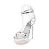 Transparent crystal heel, thin heel, waterproof table sandals, women's nightclub model catwalk shoes, pole dance shoes, Huidong women's shoes