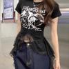 T-skjorte med fransk blonde og korte ermer for kvinner Ny sommer Slim fit Topp med bokstavtrykk