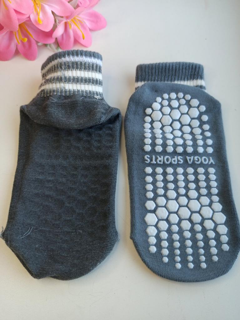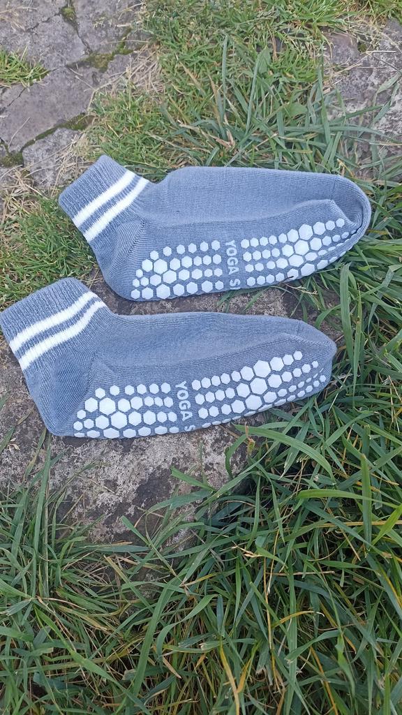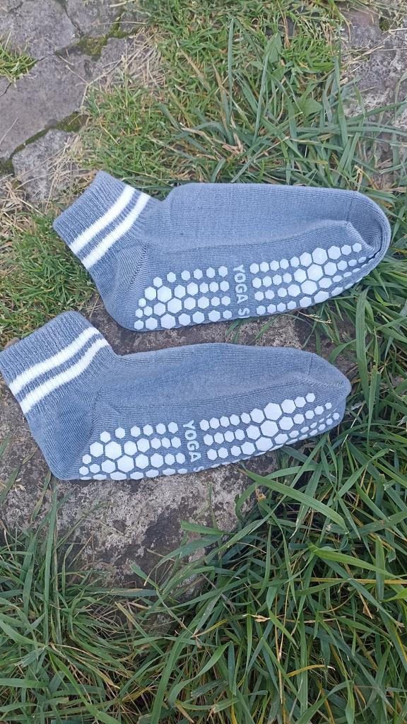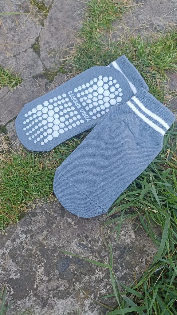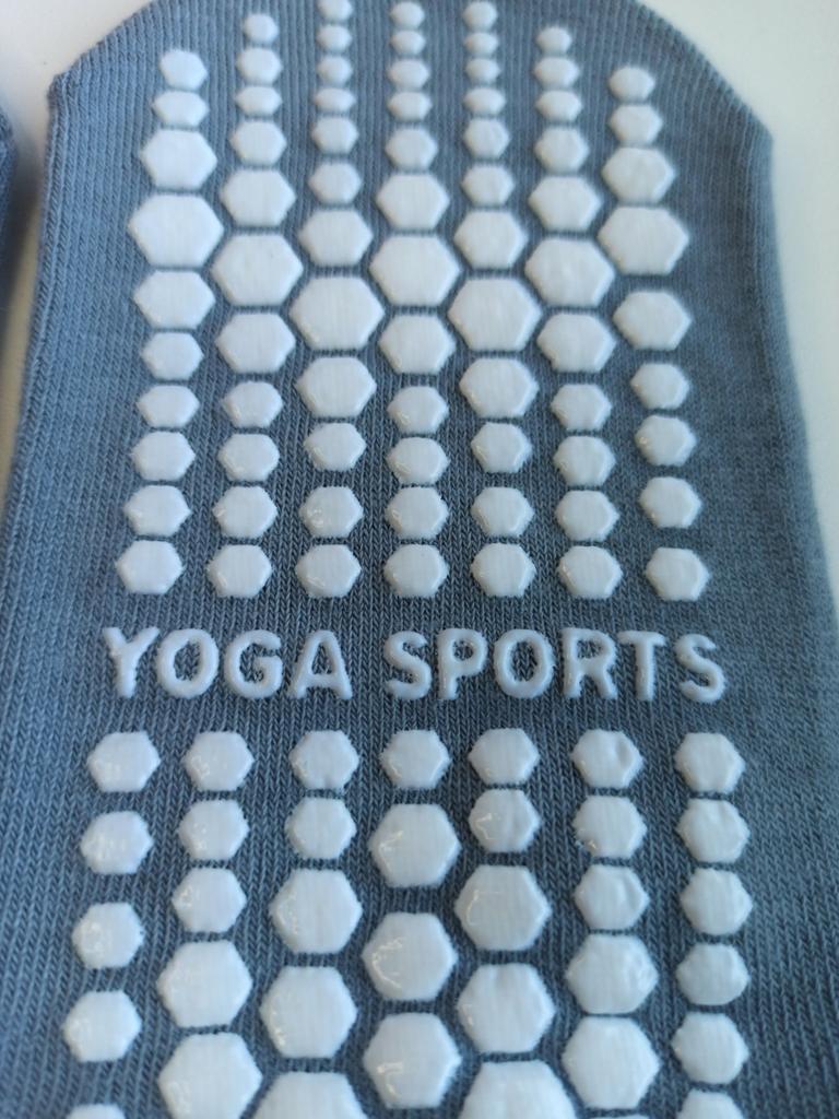 Sokker for yoga, fitness og dans Gir utmerket grep på gulv- eller matteoverflaten på grunn av et stort antall silikonprikker på sokkenes såle. Passer for yoga, pilates, gymnastikk, dans Sikrer hygiene og renslighet for hælene og hele foten under aktivitet. Stoff bomull, middels tykkelse. De sitter godt og sklir ikke ned. jeg anbefaler.