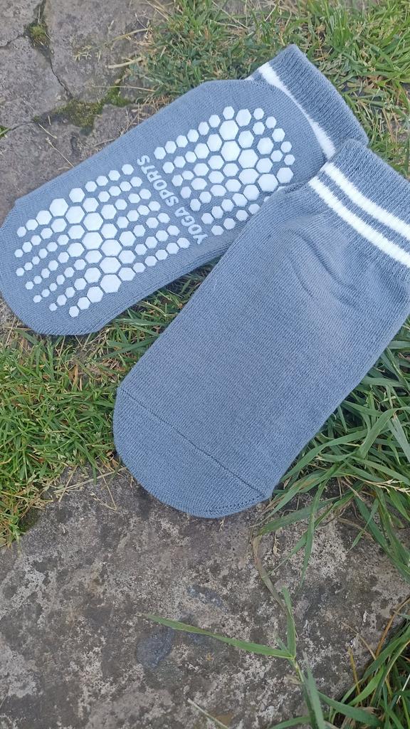 Sokker for yoga og pilates med sklisikker såle – komfort og sikkerhet under treningen Disse sokkene er designet for maksimal komfort og pålitelighet under yoga, pilates, ballett eller fitness. Sklisikre striper gir stabilitet på enhver overflate, og polstringen på foten gir støtte og beskytter føttene mot overbelastning.. Egenskaper: Sklisikre striper: Sikrer utmerket grep på overflaten for trygg utførelse av øvelser. Polstring på foten: Støtte og demping for å redusere tretthet under trening. Pustende materiale: Materialet transporterer bort fuktighet og lar huden puste. Multifunksjonalitet: Ideelle for yoga, pilates, Pure Barre, ballett, dans, fitness, sport og hjemmetrening. Jeg anbefaler.👍👍👍