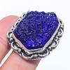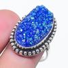 Natural Blue Moldavite Quartz 925 Sterling Silver Jewelry Ring Size 9 o7D22