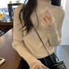 Spring Autumn Semi-turtleneck New Lace Pullover Long Sleeved Sweater Fashion Long Sleeve Women Knitted Bottoming Shirt Elegant Simple Slim Fit Top