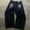 ZYLLO Y2K Harajuku Hip Hop Graphic Oversized Retro Blue Baggy Jeans New High Waist Wide Leg Trouser — kjøp online billig på Joom-butikken
