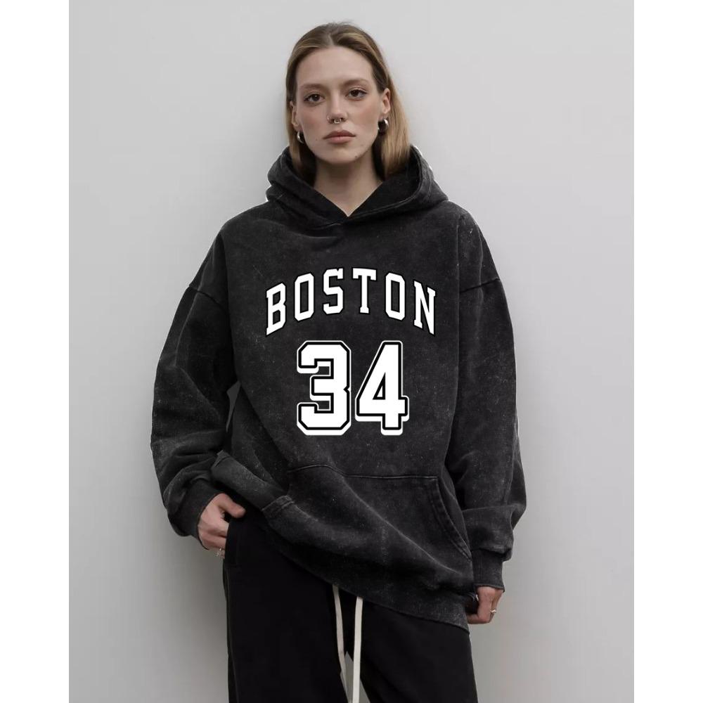 Retro Boston Kunst Bokstavtrykket Vasket Hettegenser Dame Mote Hettegenser Allsidig Oversized Hettegensere Bomullsklær — kjøp online billig på Joom-butikken