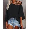 Off-the-Shoulder One-Side Loose Easiest for Match Solid Color Half Sleeve Sling — kjøp varen online med gratis levering over hele verden!