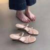 Soft leather version~ French gentle cross with open-toed sandals women's summer temperament square head fashion niche one-word slippers