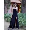 Shemoda Fashion Style Sexy off-Neck Tube Top Dress Women's Stylish Patchwork High Slit Draping Long Dress — kjøp varen online med gratis levering over hele verden!