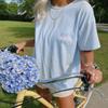 Online-butikk Joom tilbyr deg billige og kvalitetsfulle varer. Milk Blue Short-Sleeved T-shirt Female 2025 New Arrival Summer Pure Cotton Loose Easiest for Match American Retro Casual Shoulder Half Sleeve: priser på Joom er laveste! Vil du kjøpe denne varen enda mer lønnsomt? Følg med på våre rabatter og tilbud!