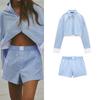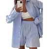 Classic Blue and White Stripes Cotton Women's Long-Sleeved Shorts Pajamas — kjøp online billig på Joom-butikken