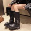 Fashion Large Size 35-42 Women Retro Belt Buckle Venom Boot Soft Bottom Motorcycle Boot Women Slope Heel Punk Fad Long Boots Botas Mujer