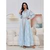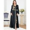 Middle East Robe Elegant New Women clothes Hot Drilling Long sleeve V-neck Big Hemline Lace Gold Thread Dress Insdresses