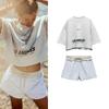 Early Autumn New Arrival Female Fashion Stylish Printing Flannel Sweatshirt 3253804 Text Decoration Shorts 3253807