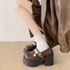 Platform British style small leather shoes women's thick autumn high heels one pedal French loafers versatile height-increasing small shoes