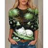Women's T-shirt 3D Bell Kitten Print Fashion Long Sleeve Round Neck Regular Top Holiday Weekend Spring and Autumn