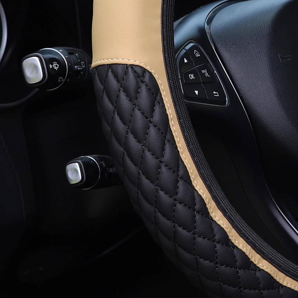 Leather Artificial Diamond Crown Car without Inner Ring Steering Wheel Cover Car Accessories Steering Wheel Size 14.5-15INCH