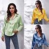 Solid-Color Long-Sleeve Business Shirt Top Satin Long Sleeve Shirt Top