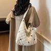 Spring and summer new fresh and versatile embroidered bow shoulder bag plaid underarm bag lazy canvas bag