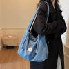 Casual Denim Tote Bag Large Capacity Canvas Bucket Bag Oxford Drawstring Shoulder Bag Travel
