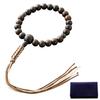 Men's Buddhist Prayer Beads by Kyoto Butsudan Hayashi, Pure Silk Braided String with Ebony (Unpolished) and Two Heavenly Tea Crystals (Includes Prayer
