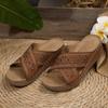 Summer new women's slope heel platform slippers large size fish mouth casual embroidery beach sandals