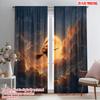 2pcs,2D plane printing Light Filtering Curtains Full Moon_ Gloomy Woods_ and Graveyard Versatile Durable Polyester (without rod)