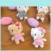 This plush character keychain features a cute, long-legged cat or dog dressed in traditional kimono style. Made of ultra-soft short-pile plush and filled with lightweight PP cotton, it measures approximately 7 to 8 inches in height. Its detailed design makes it perfect for decorating bags or as a gift for fans of Sanrio characters. Suitable for daily use, it adds a charming touch to backpacks or keys. Wipe clean with a damp cloth for maintenance.